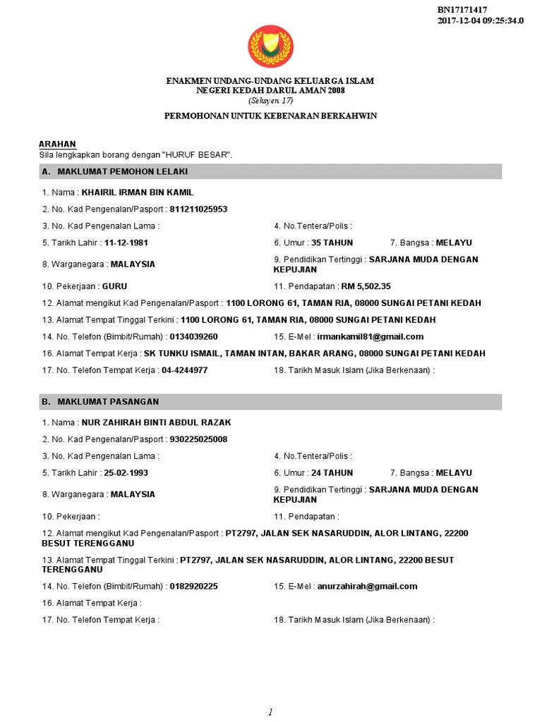 Senarai semak (mengikut jantina, status, warganegara dan tempat nikah) 21 borang hiv test kedah. Borang akuan pengesahan permastautinan (jika berkenaan) 17.